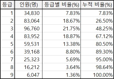 그럼 1등급은 10명중 1등해도 될까말까하다는 이야기.